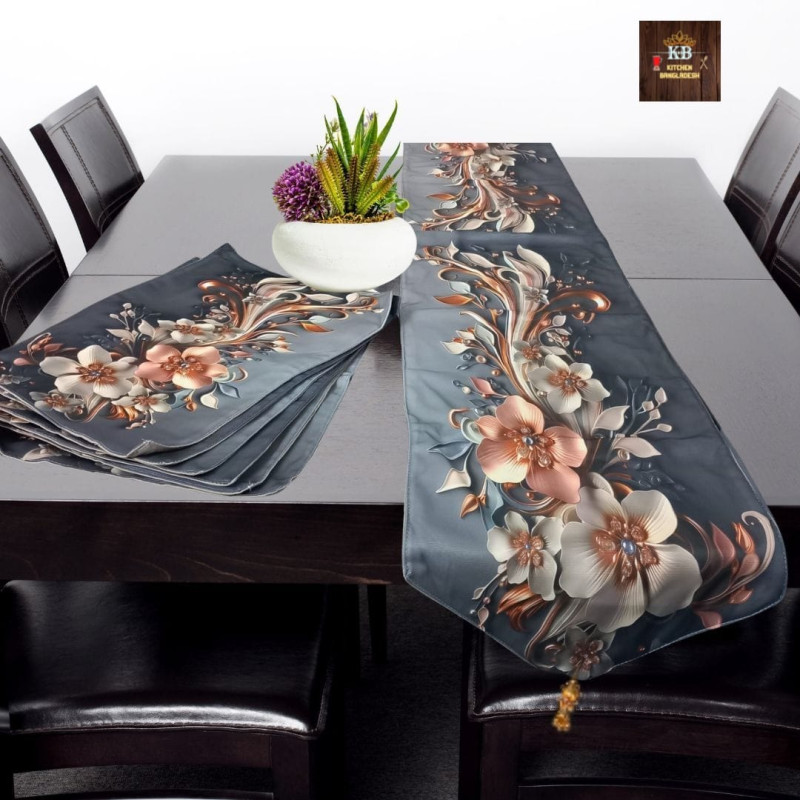 আপনার ঘরের সৌন্দর্য বৃদ্ধিতে আমরা নিয়ে এসেছি প্রিমিয়াম কোয়ালিটির থ্রিডি প্রিন্টের " 3D Dining Table Runner + 6p mat "